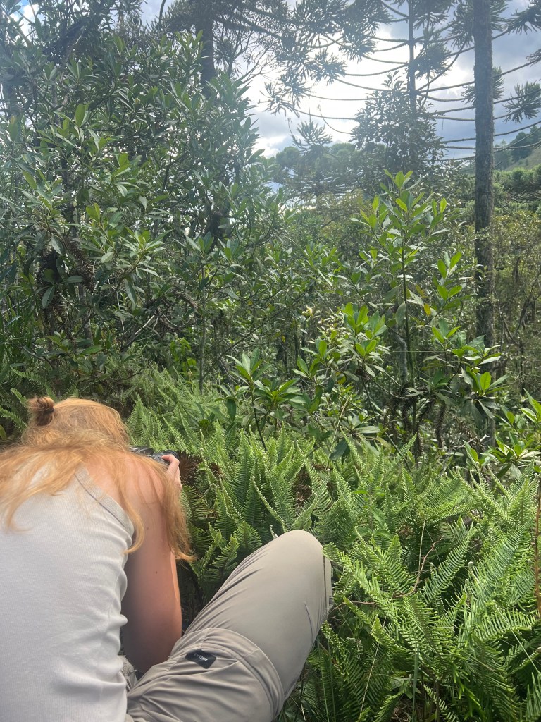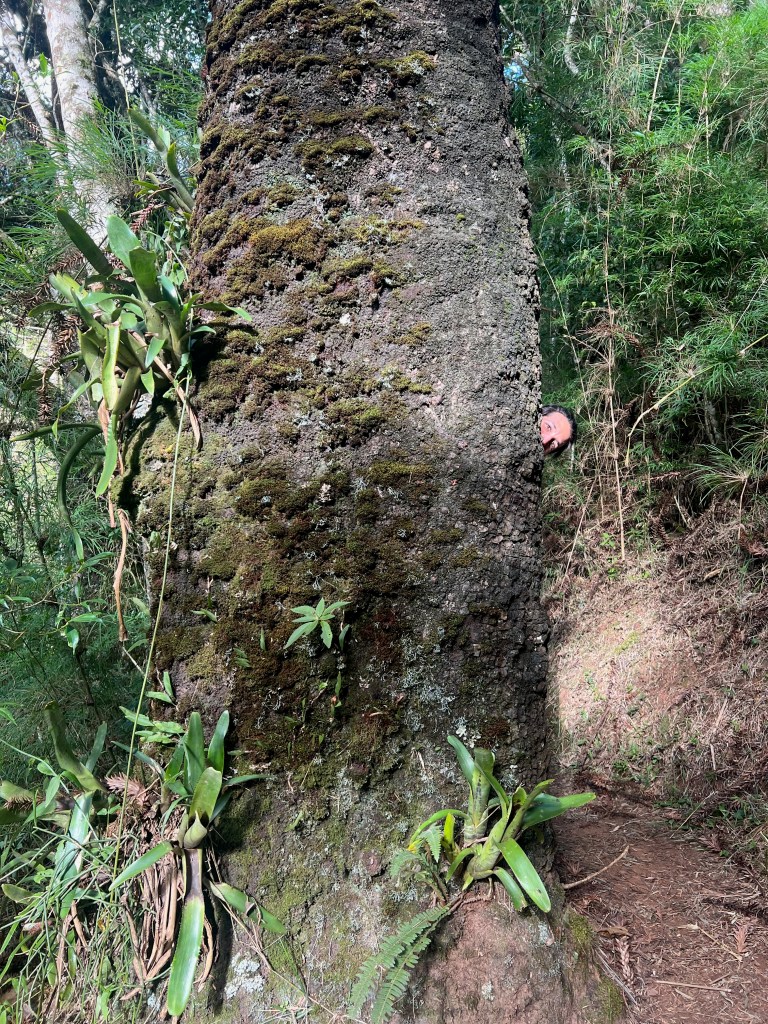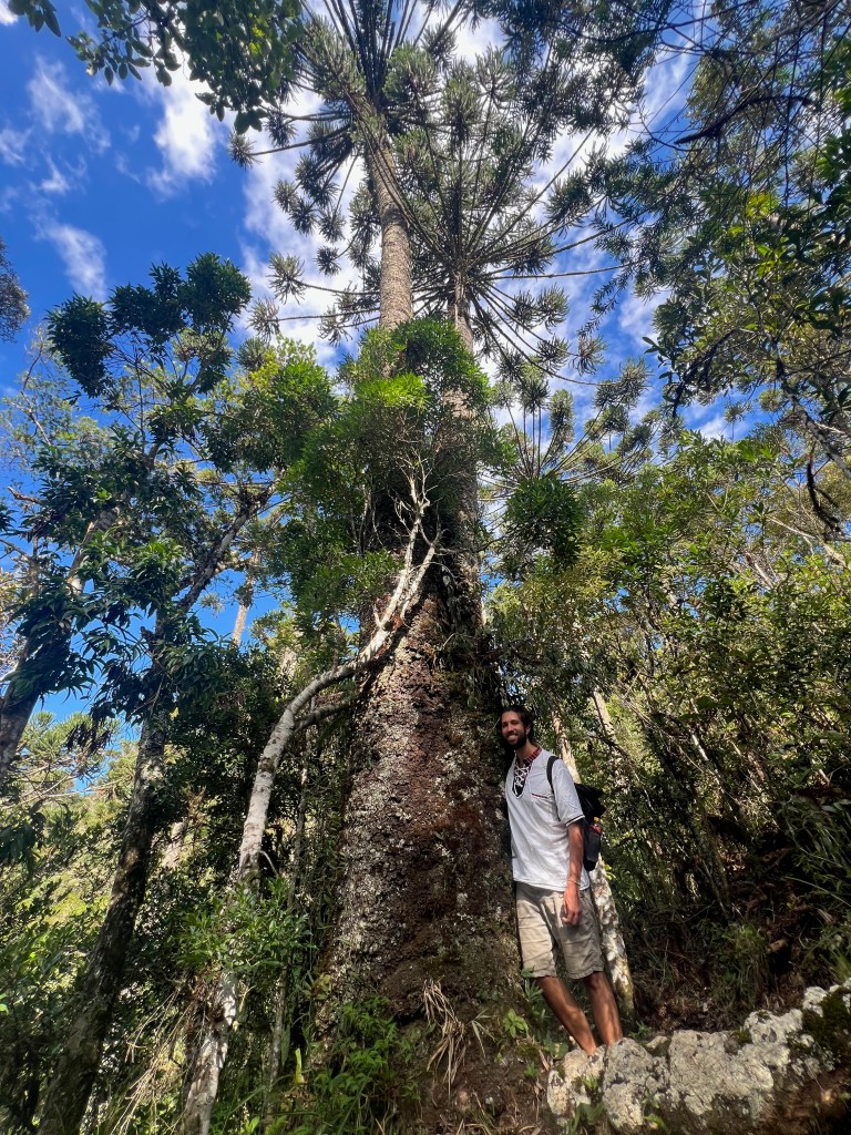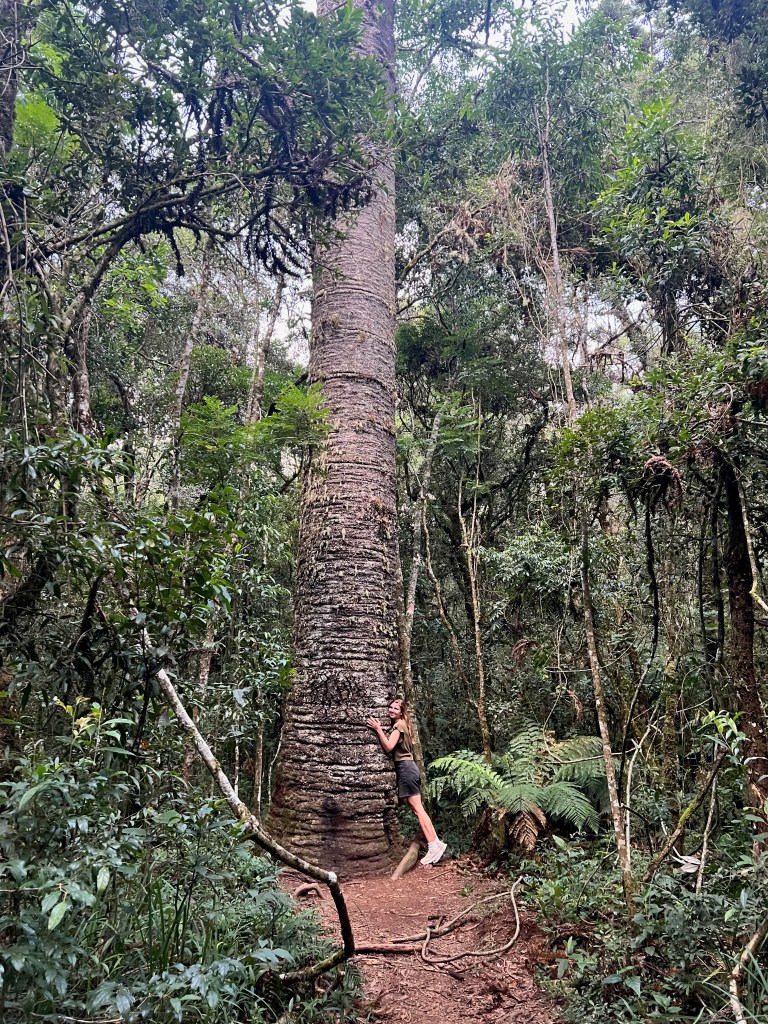 The altitude of the forest allows pines to thrive here, and the Araucarias are neighbours with all kinds of beautiful trees. We take some time to sit under a long-needled pine, with subtle and soft needles that blanket the ground. Here we come to a familiar feeling, the smell of pines reminiscent of Sardinia, and the yellow carpet a soft mat for our slowdown. We sit against the trunk; long enough for the stingless bees to come take an interest in us.