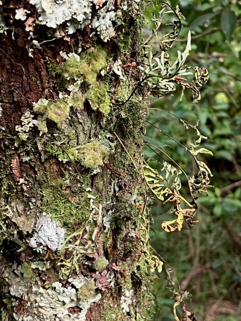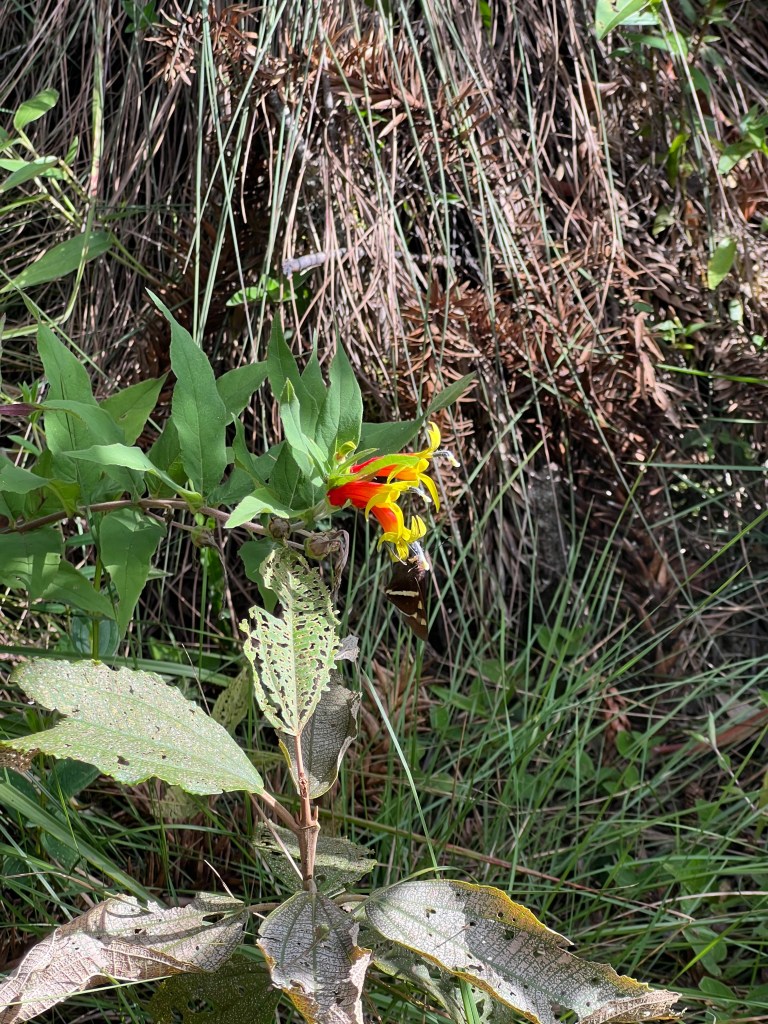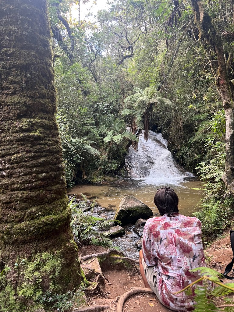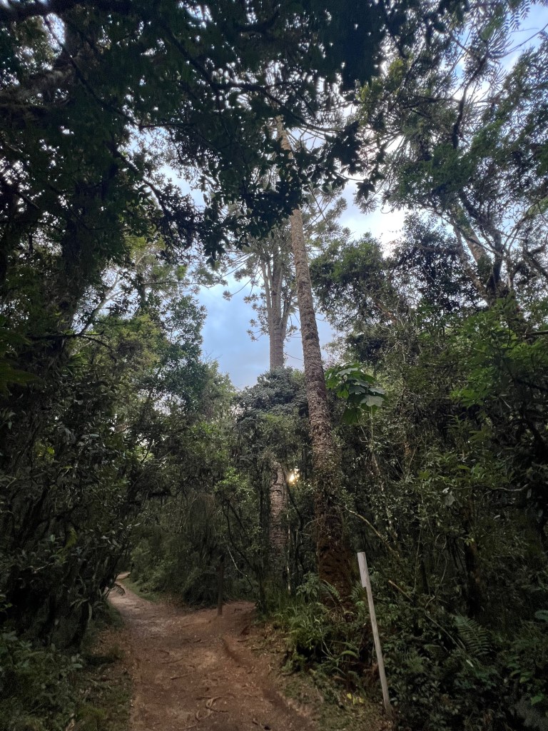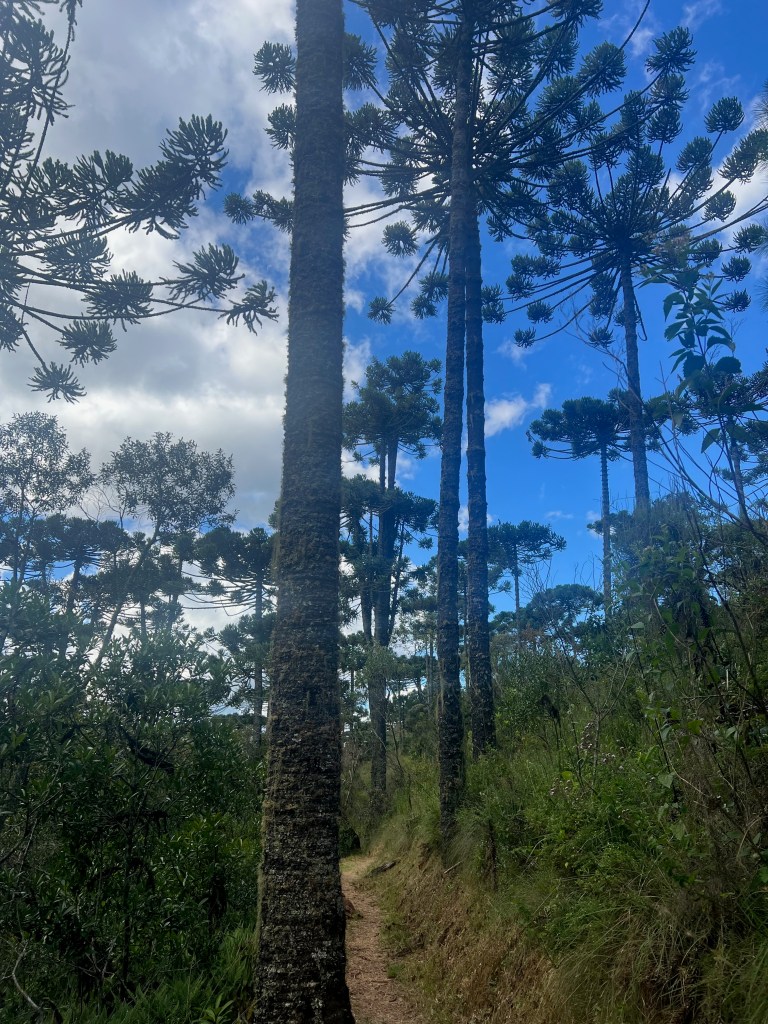 The altitude of the forest allows pines to thrive here, and the Araucarias are neighbours with all kinds of beautiful trees. We take some time to sit under a long-needled pine, with subtle and soft needles that blanket the ground. Here we come to a familiar feeling, the smell of pines reminiscent of Sardinia, and the yellow carpet a soft mat for our slowdown. We sit against the trunk; long enough for the stingless bees to come take an interest in us.
