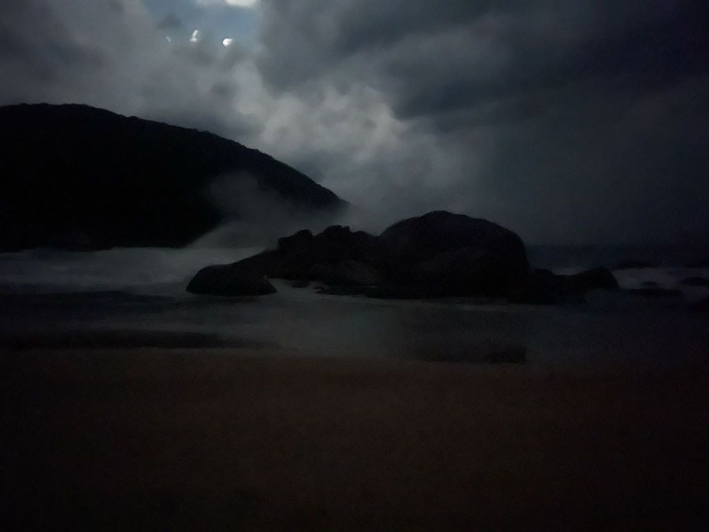 La nuit, la pluie s’est intensifiée pour devenir un véritable orage. Le bruit des vagues sur les rochers était si fort qu’il faisait trembler nos fenêtres. Le moment idéal pour se promener sur la plage (et pour tester nos lampes frontales) ! Nous avons décidé de continuer à faire ami-ami avec les éléments.