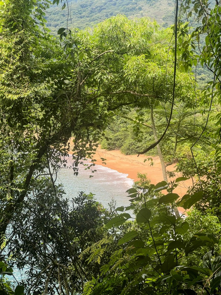 After Paraty, a small but well-known pretty town in Colonial style, and Paraty-Mirim, its tiny outskirt further in the forest, Sumaca was the third stop of our coastal trek down the ‘Costa Verde’ of Brazil. This region is one of the most gorgeous parts of Brazil; the only place where the trees of the Atlantic rainforest dip their branches straight into the azul ocean, where old growth reaches all the way into the orange sands of pristine beaches, full of large round boulders shaped by the sea over centuries.