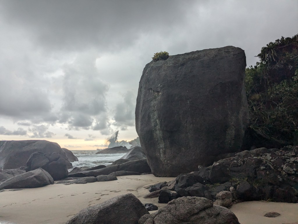 The sea at Sumaca beach was inviting but powerful – you could walk out hundreds of meters in flat water, knee-deep at most, because the scattered boulders were breaking the large waves. However, hidden within this flat lagune was a vicious current, pulling you towards the next rip-curl forming further out. It was almost as though for once it was the sea catching its net, trying to pull you into its depth. One particularly huge, round boulder right in front of our hut broke the waves in such a way that the biggest ones produced a powerful BOOM that vibrated through the sand and into our bodies like a deep rumbling bass.