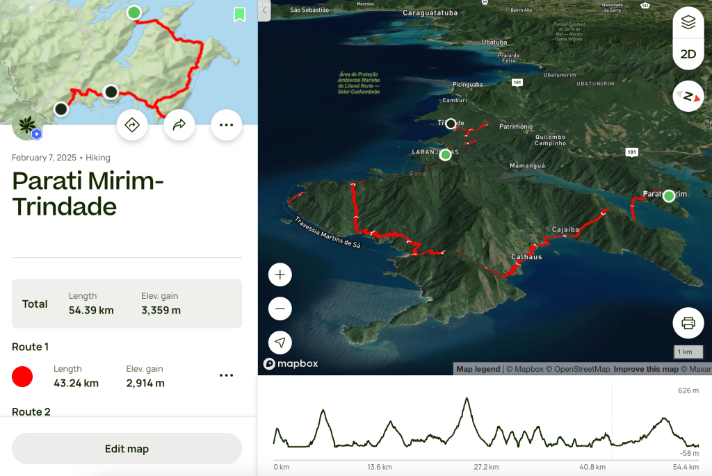 Talking with our hosts in Sao Paulo, Roberto mentions a hike near Paraty called the “Traversia da Juatinga”. Keen to get some outdoors time and drawn also by the fact that this hike crosses from the town of Paraty all the way to Trindade (two towns that we were eager to explore again after our visit in 2023), we set out to undertake this hike. Paraty being situated in between Rio and Sao Paulo we initially imagined undertaking it as a step on the path back from Rio to Sao Paulo. We had left Sao Paulo to visit my family in Rio and had to come back there later to take possession of our car before setting out on a bigger adventure.