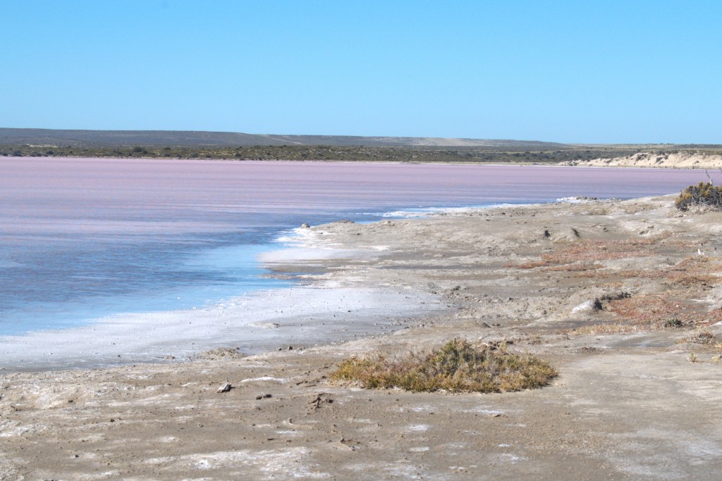 Die Farben hier sind unglaublich. Bei meinen Versuchen, das luzide Träumen zu lernen, stelle ich mir mehrmals am Tag die Frage „Träume ich?“, und die Antwort darauf ist hier in Patagonien immer schwieriger geworden. An Land gibt es alle Schattierungen von Beige und Pastellrosa, mit schwarzen Flecken von früheren Bränden, oder mit leuchtend goldenen Gräsern, die auf ein unglaubliches Azurblau im Meer treffen. Es ist wirklich ein Blau, das ich noch nirgendwo anders im Meer gesehen habe, eine Art Petrol oder dunkles Türkis, das einen starken Kontrast zu den beigen Klippen und rötlichen Stränden bildet. Überall gibt es weiß, rosa und blaue Salzseen, die in der Sonne glitzern. Sie machen die Luft so trocken, dass sich unsere Hände und Lippen ständig spröde anfühlen.