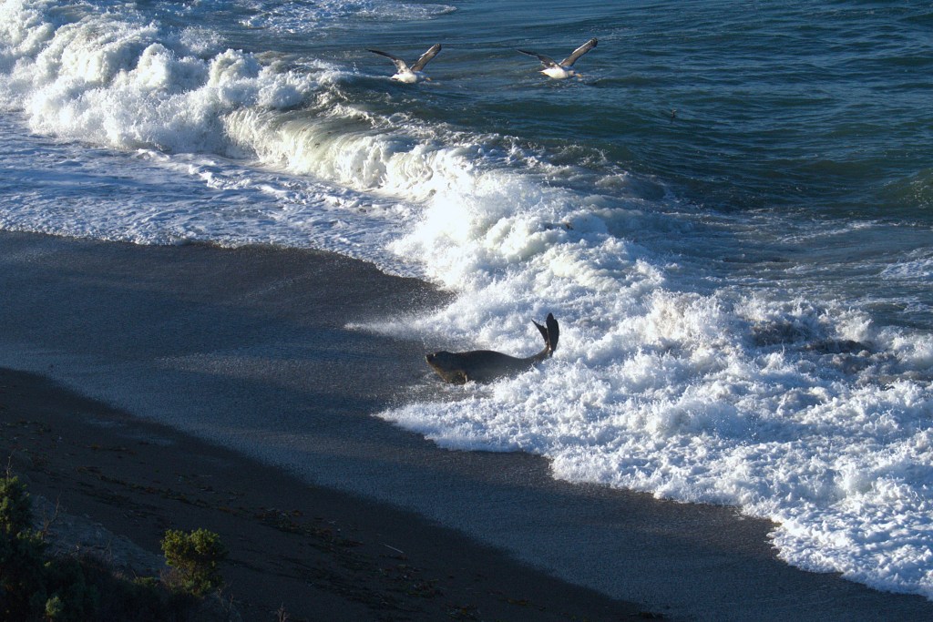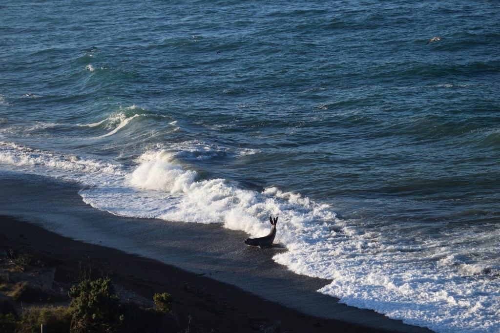 Mais nous avons finalement pu rencontrer de près les lions de mer, l’une des espèces emblématiques qui vivent dans toute cette région. Ces animaux sont très actifs, ils jouent, nagent, courent et produisent constamment un concerto bruyant de grognements et de grondements, contrairement aux autres grands mammifères marins de cette côte, les « éléphants de mer » ou les « phoques », qui ressemblent davantage à d’énormes boules de graisse qui se déplacent à peine sur terre.