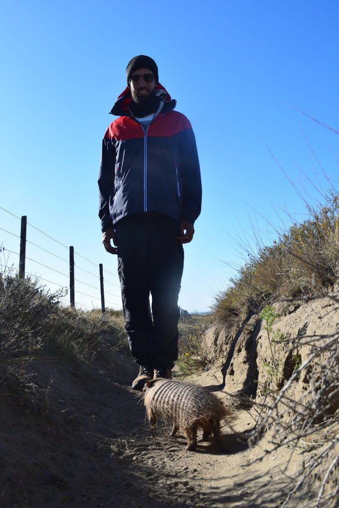 But the cutest of all must have been the penguins. Along this coast, several species breed in huge colonies, and Peninsula Valdes is the northern-most point where it is possible to come close to the Magellanic kind. We were very lucky to find the babies from this January still in their nesting ground, chubby and looking adorably unkept as they tried to pluck their last fluffy brown feathers in order to become real black-and-white penguins like their parents. I laid down on the ground just centimeters next to them, and held eye contact with a particularly small one for a long time, wishing him well. I hope he will grow up in time to take to the oceans with his community.