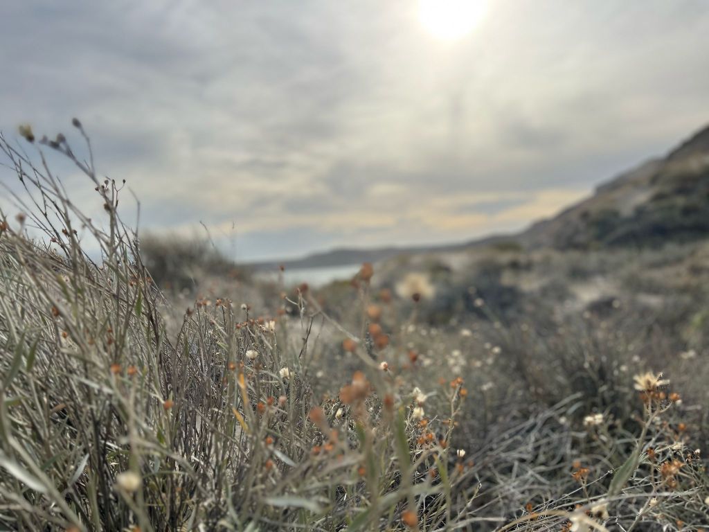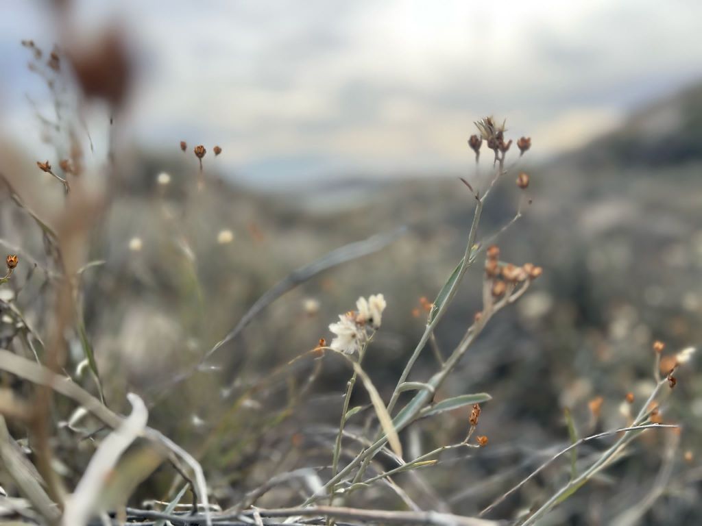 Plaine après plaine, la steppe aride s’ouvre sur un littoral sans fin de falaises de grès intactes. On nous avait dit que ces routes interminables pouvaient devenir « ennuyeuses », mais jusqu’à présent, nous ne nous en sommes jamais lassés. Si vous avez l’œil pour les détails, vous remarquerez la grande variété de ces plaines, la vie qu’elles recèlent. Il y a différents arbustes et herbes, tous épineux et épais, formant des motifs psychédéliques ; un brin d’herbe dorée peut être aussi épais qu’une grosse aiguille à tricoter. Pourtant, ils recouvrent souvent de minuscules fleurs, dures et résistantes au vent, suffisamment jaunes pour attirer leurs pollinisateurs, même ici, dans ces terres désolées. Il n’y a vraiment rien ici qui n’ait été façonné par le vent, cette force omniprésente. Alors, même s’il est parfois rude pour nous, nous éprouvons beaucoup d’amour pour lui, car tous les êtres ici, s’y étant parfaitement adaptés, ne voudraient pas qu’il en soit autrement.