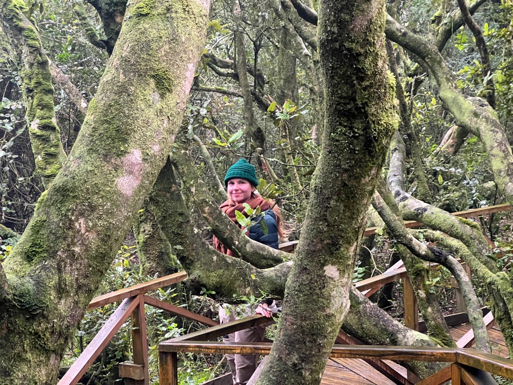 Ce jour-là, nous avons visité la forêt magique du Bosque Jorge Fray, un écosystème unique vivant dans un brouillard quasi permanent face à la mer. Et de là, nous sommes tombés sur l’un des plus beaux endroits de notre voyage, un endroit qui, comme Iguaçu, Valdès et El Chaltén auparavant, nous a fait pleurer. Nous avons découvert, cachés au détour d’une route, de vastes champs de cactus orange et verts, capturant une lente lumière venant de la mer. Le brouillard et les vagues poussent contre les montagnes majestueuses derrière. Ici, entre des rochers imposants, se trouve un petit village caché. En descendant de voiture, nous sommes frappés par la façon dont la lumière traverse les épines des cactus, qui brillent de blanc et d’or. Nous marchons sur les sentiers qui mènent aux dunes, enchantés par l’odeur de la végétation environnante. Au bout de la route se trouve un petit village de pêcheurs. En partageant une tasse de café avec ses habitants, nous apprenons des histoires sur leur vie ici, sur la façon dont ils collectent les algues pour gagner leur vie. Ils nous parlent des défis que leur éloignement crée, de la douleur de voir leurs fils et leurs filles devoir quitter leur petit havre de paix après le collège pour aller vivre dans une plus grande ville, de la douce solitude des vagues.