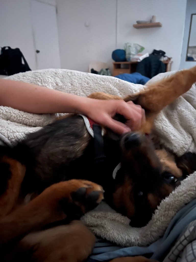 We were incredibly lucky to be staying at an AirBnb run by Anita. She did not hesitate a second to allow us to bring in this street dog that needed our help so desperately. We are infinitely thankful to her for that; I don’t think he would have made that night if he had to go back on the streets, not that we would have let it. When we came home we gave him what we assume was his first shower ever, and washed away the dirt and the scars that he had on him. We went to bed that night unsure of what would happen the next morning. He fell asleep quickly and without any qualms, his breathing shallow, his skin against his bare bones with barely any muscle left.