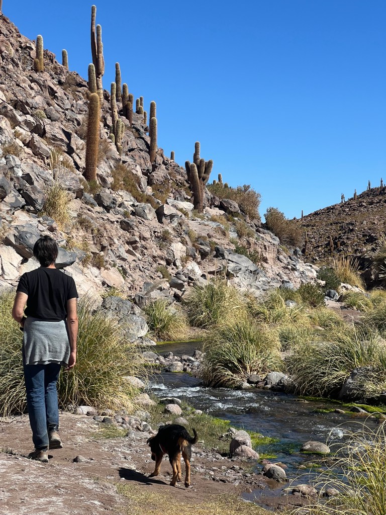 Nous devions nous rendre à San Pedro, et après une nouvelle journée de réparations infructueuses, nous nous sommes mis en route pour essayer de l’atteindre sans notre voiture. Mais voyager avec un chien est un défi en soi. Avec un chien, les bus ne sont pas une option, alors nous avons essayé de trouver une voiture à louer. Au premier arrêt, nous avons été refoulés, nous avons sauté dans un Uber pour aller chez le prochain loueur que nous avons pu trouver. Une fois de plus, la gentillesse des Chiliens nous a stupéfiés. Notre chauffeur Uber, ému par notre histoire, a décidé de descendre d’Uber et de nous garder, nous conduisant jusqu’à ce que nous trouvions une location, et je pense que si nous ne l’avions pas fait, il nous aurait pris lui-même aussi. Heureusement, nous avons réussi à trouver une voiture, à trouver notre chemin et à arriver à San Pedro.